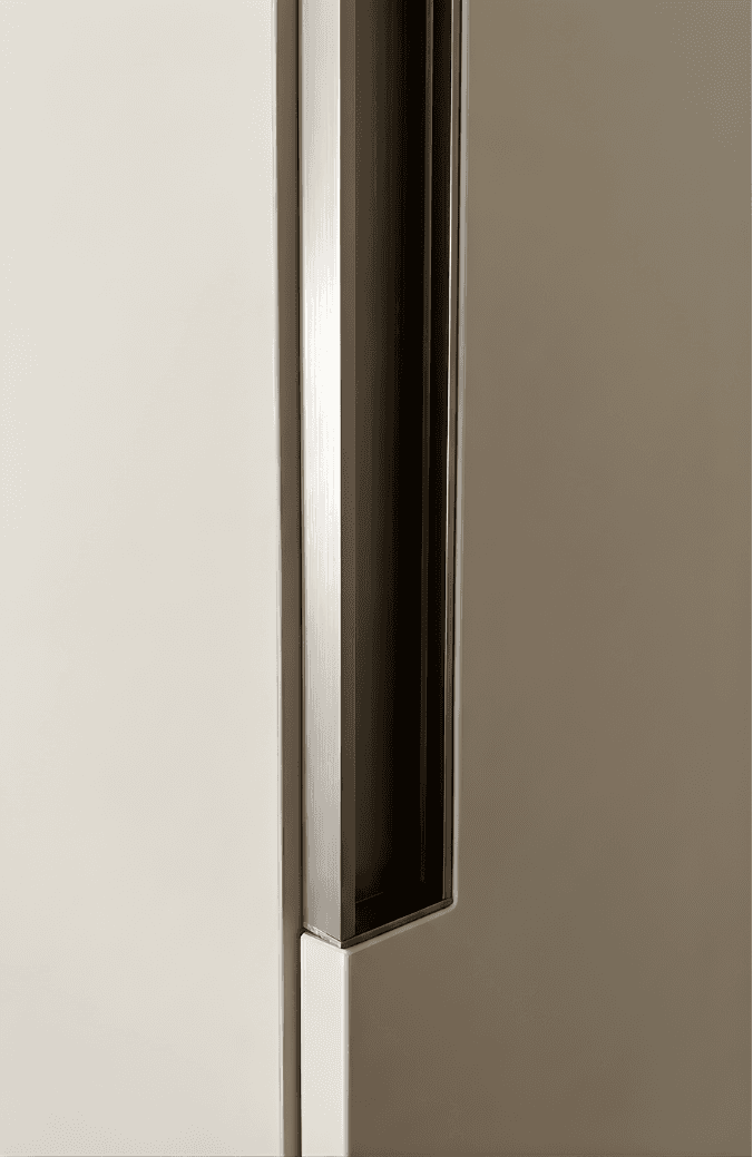 El sistema de gola es una opción minimalista y moderna que prescinde de tiradores visibles. Se basa en un perfil de aluminio o acero incrustado en los frentes del mueble, permitiendo abrir las puertas y cajones mediante un pequeño espacio para los dedos.