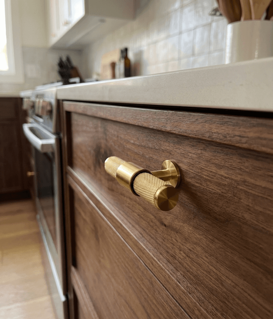 Este es el sistema tradicional, donde cada puerta o cajón cuenta con un tirador físico, que puede estar fabricado en distintos materiales como acero inoxidable, aluminio, madera o cerámica.