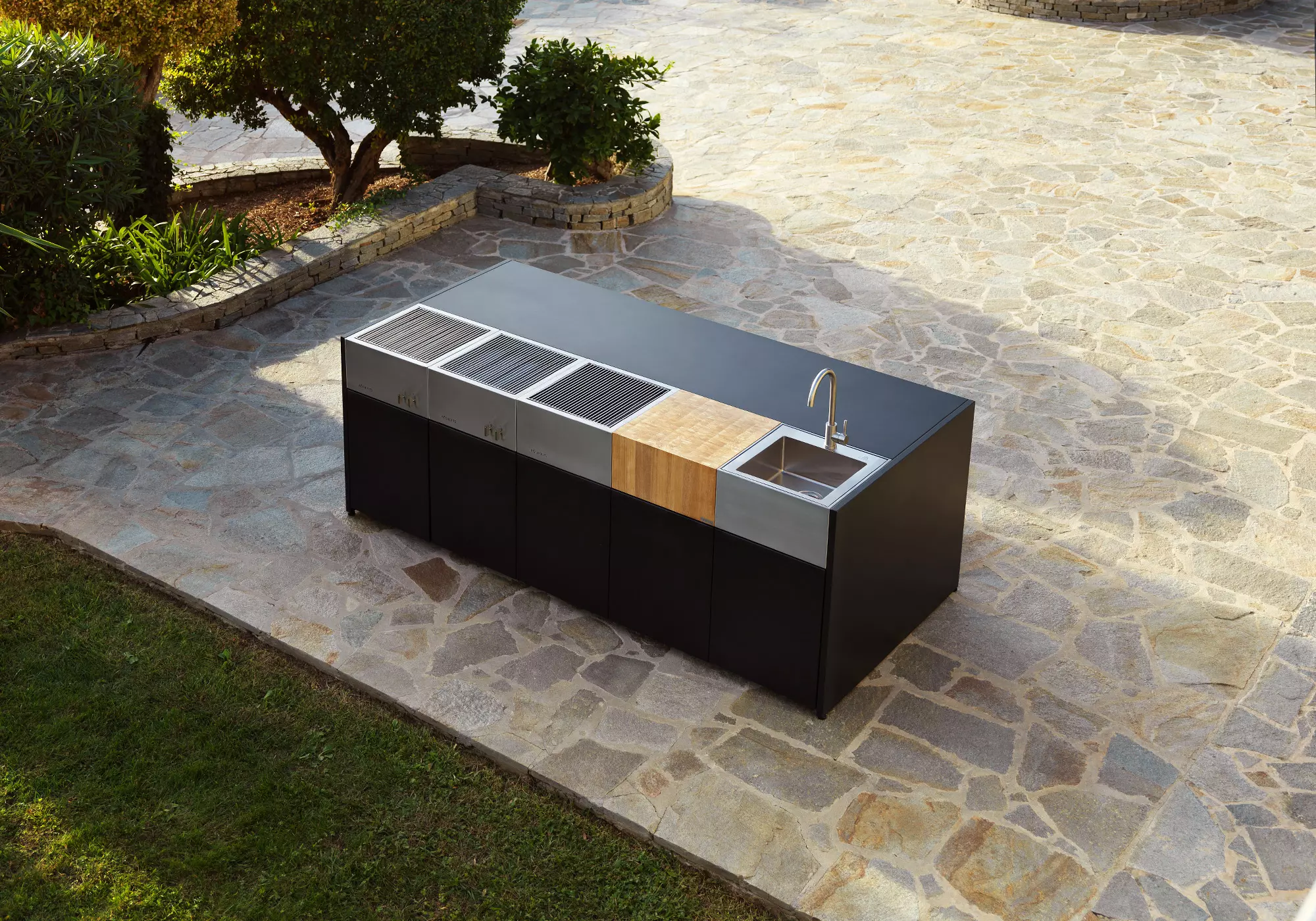 Las cocinas de exterior te permiten disfrutar de los mismos materiales y acabados de alta calidad que usarías dentro de casa, pero pensados para resistir el uso y las condiciones del exterior. Diseño bien resuelto, materiales duraderos y una ingeniería cuidada para que cocinar fuera sea tan cómodo como natural.